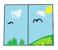 2. Narysuj na kartce z bloku lub w Paincie całe okno - widok z niego, parapet, możesz zasłonki i firankę.